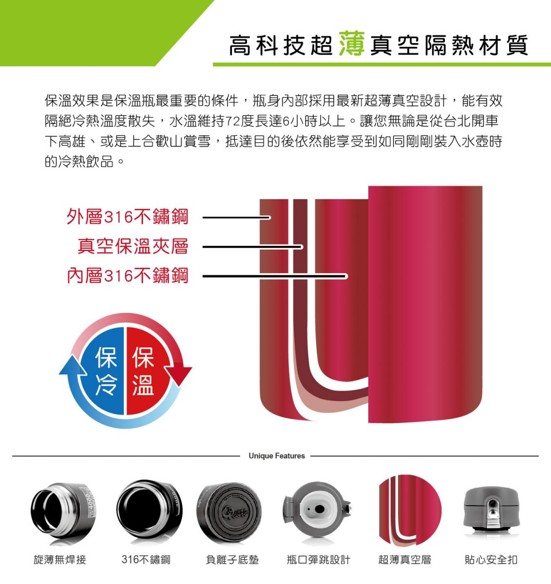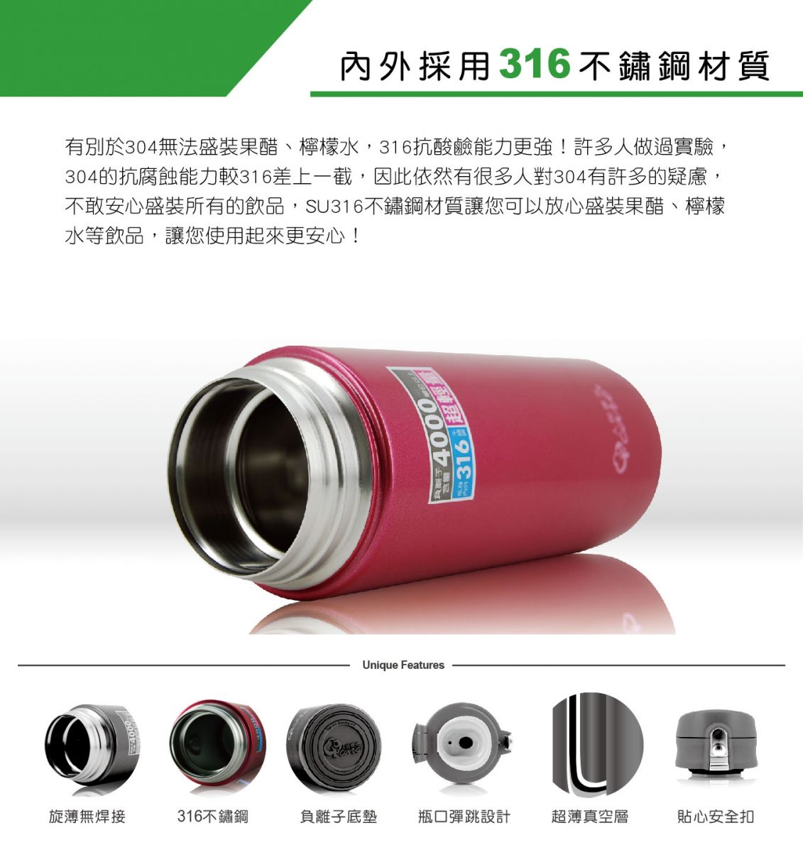| 瓶身採用高抗酸蝕 SUS316不鏽鋼材質 | |||||
