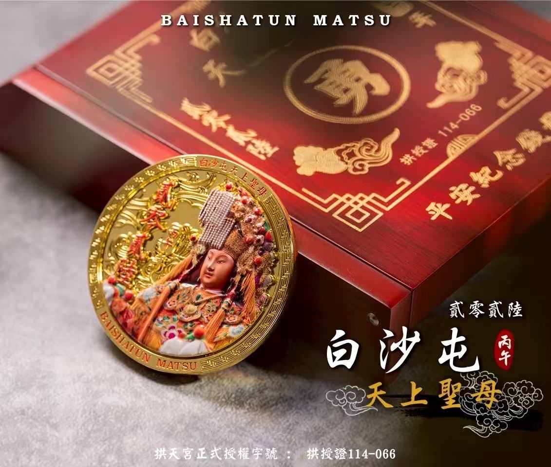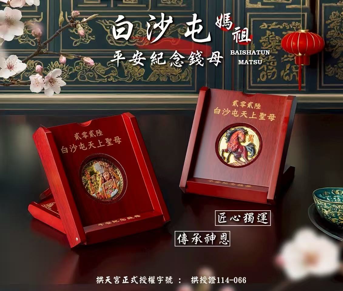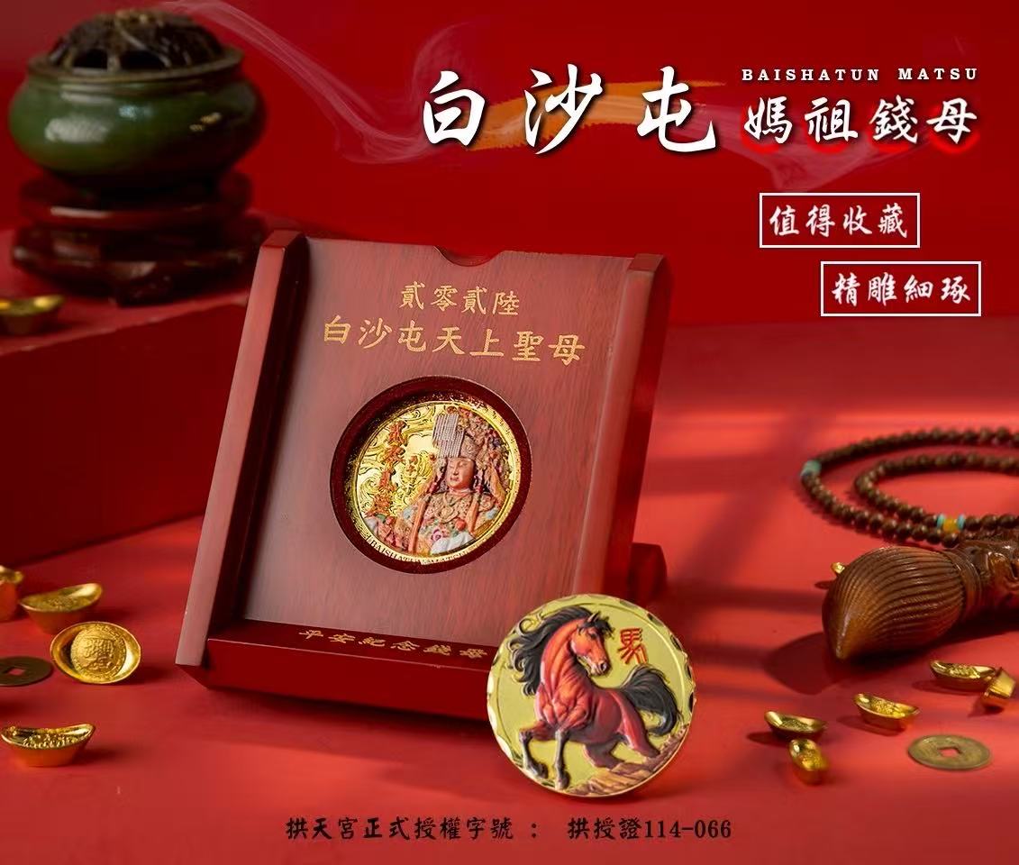 首頁 | 聯名專區|白沙屯媽祖聯名| 2026年白沙屯媽祖平安紀念錢母 按讚: 78人 瀏覽此商品 2026年白沙屯媽祖平安紀念錢母 一般售價:990 會員價:899 數量 加入購物車 商品特色 如何使用 影片介紹 退/換貨或須知