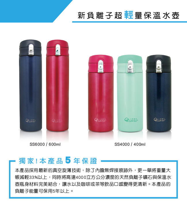 負離子+SUS316 內膽,入口清爽、氣味更純淨。